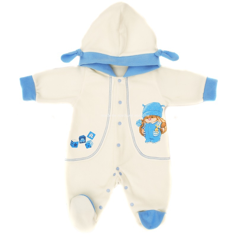 Комбинезон с капюшоном (декорирован ушками), с закрытыми ножками, рукавчики на манжетах, спереди и на ножках на кнопочках. Комбимнезон подойдёт как для прогулок в летнюю, прохладную погоду, так и для поддёвки в меховые мешочки.