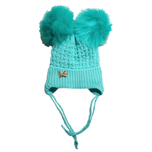 Шапка на девочку (Велсофт) с двумя помпонами